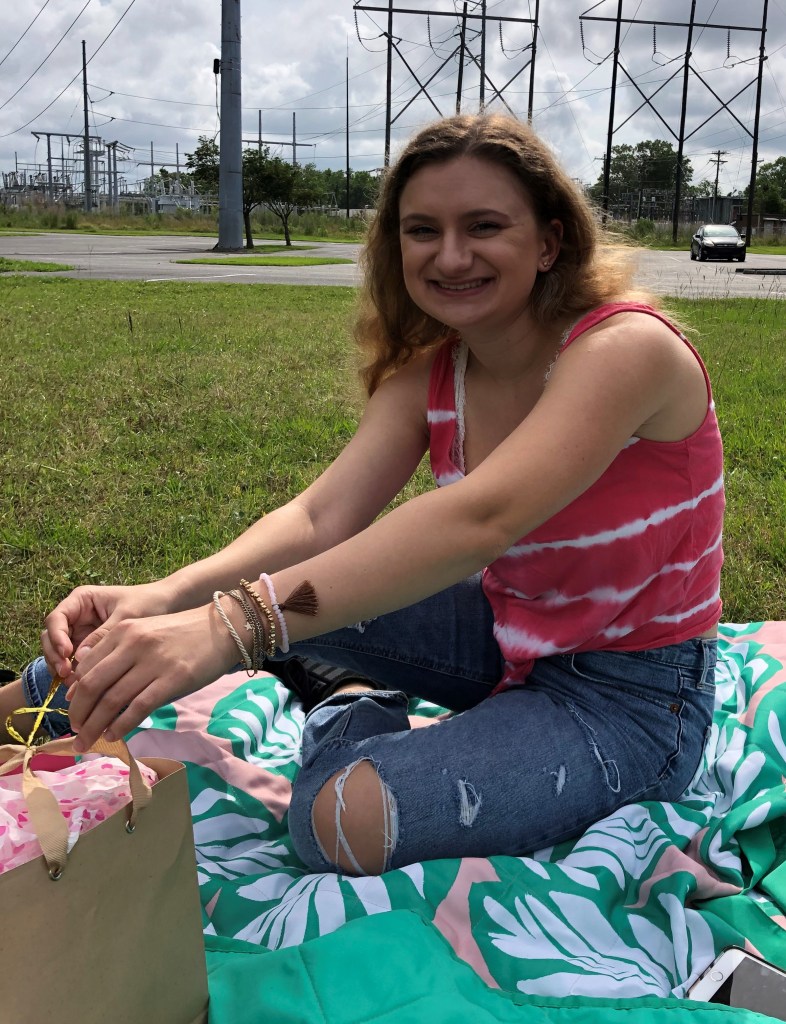 South Carolina has been slowly re-opening over the course of May, so my friends and I felt it was safe to engage in a socially distant birthday party that afternoon. We planned to bring our own food and have an outdoor picnic. Juliet and I got Chipotle delivered, and I held the chocolate birthday cake that she had baked me on my lap in the car on our way to meet our friends. We spread out our picnic blankets six feet apart from one another, and placed a bottle of hand sanitizer and anything else that we needed in the middle. We chatted and ate, and they sang me “Happy Birthday” before we enjoyed the chocolate cake together. It was a nice little gathering, and all the more special that it was the first time seeing each other since before everything shut down.
